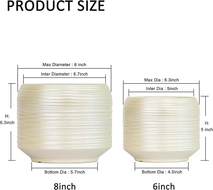 - 【Two Sizes for Versatile Planting】:Includes one 8 inch and one 6 inch ceramic pot with drainage holes. These potting containers for plants are ideal for medium house plants, herbs, or indoor garden displays.