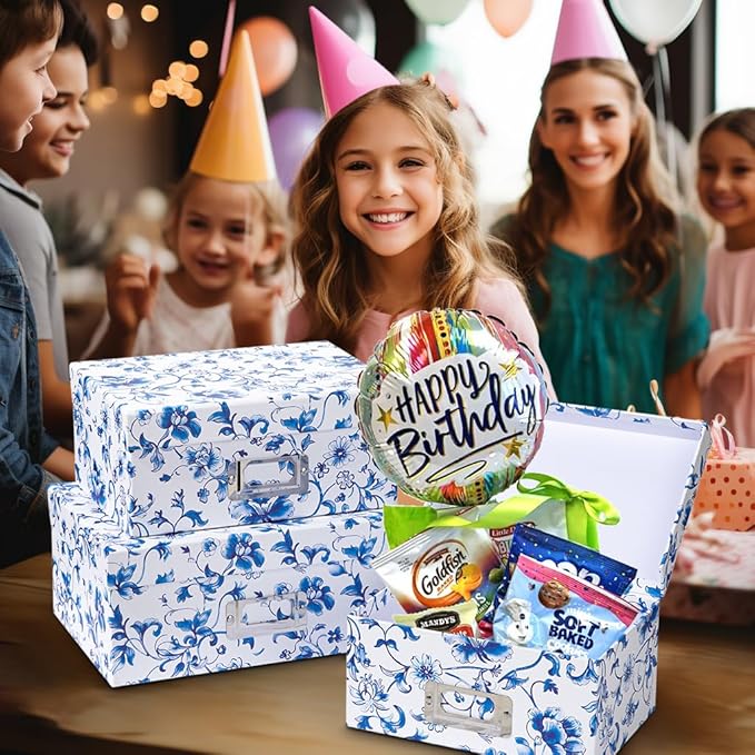 - 4 NESTING SIZES FOR VERSATILE STORAGE: Includes four boxes: 6.7x4.7x3.1", 7.9x5.5x3.5", 9x6.3x3.9", and 10.2x7x4.5". Use them together or separately for organizing keepsakes, photos, letters, crafts, and more.