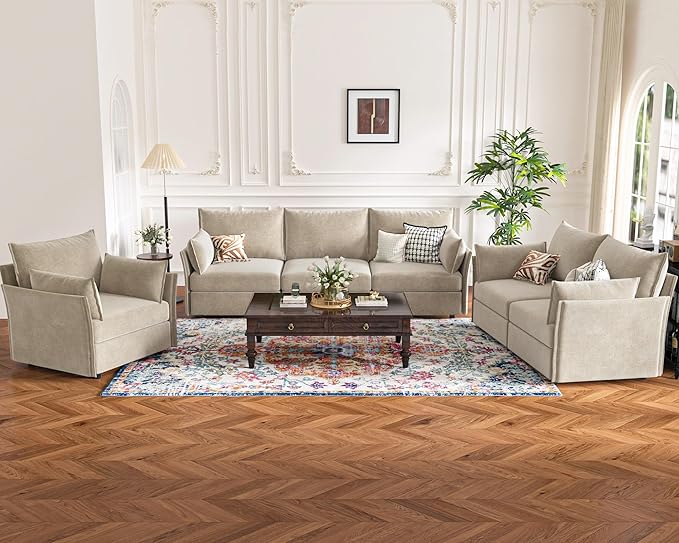 - đź’ˇ Premium Chenille Fabric - The modern sofa is upholstered in premium chenille fabric that feels luxurious to the touch, offering both comfort and durability. The material is not only soft and inviting but also non-pilling and won't stain, ensuring long-lasting quality.