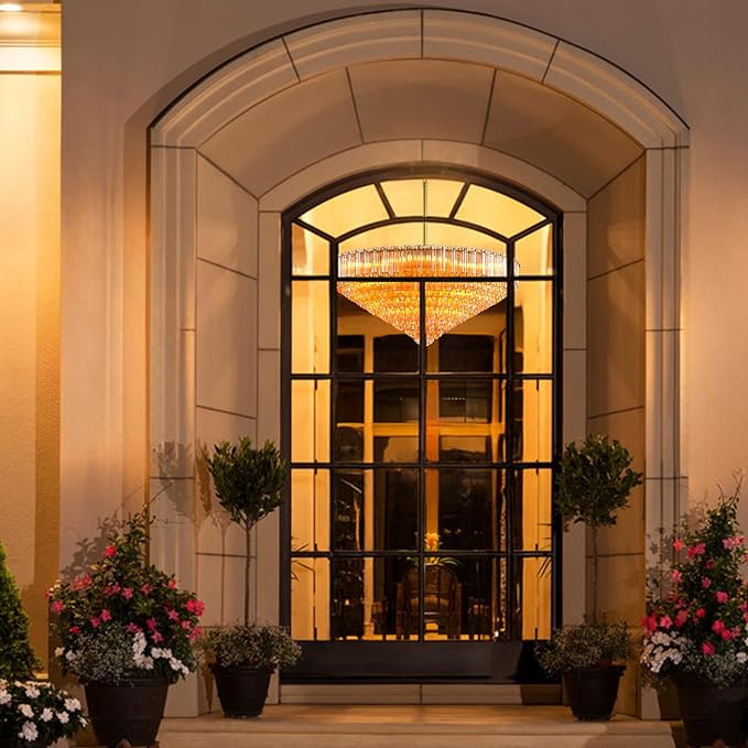 - 【Handcrafted 30-Inch Round Crystal Chandelier】Expertly arranged with 100+ amber-tipped K9 crystal rods, this dining room chandelier radiates warm golden illumination perfect for grand dining tables, estate dining rooms, hotels, and commercial kitchens. Multi-tiered layers elevate luxury for living rooms or kitchen islands.