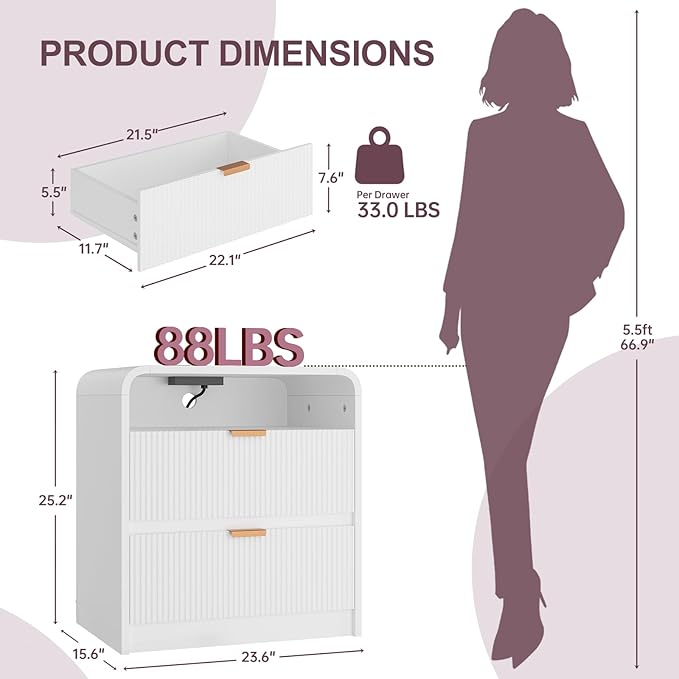 - 【Versatile Nightstand with Charging Station】Bedside Cabinet with 2 AC outlets & 2 USB ports conveniently located along the top, this nightstand has your charging needs covered. Measuring 24"W × 15.5"D × 25"H, brings both function and flair to your home organization. The top surface for staging framed photos, artful accents, and more.