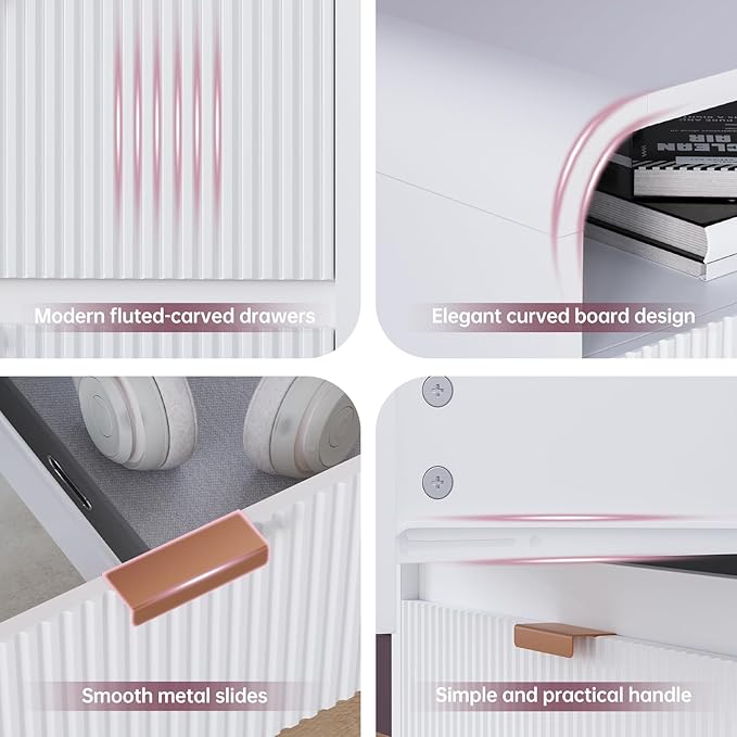 - 【Elegance Meets Chic】 Elevate your space with this nightstand, blending artful design and modern durability. Sculpted fluted details create captivating texture and depth, turning functional storage into a statement piece for any bedroom or living area.
