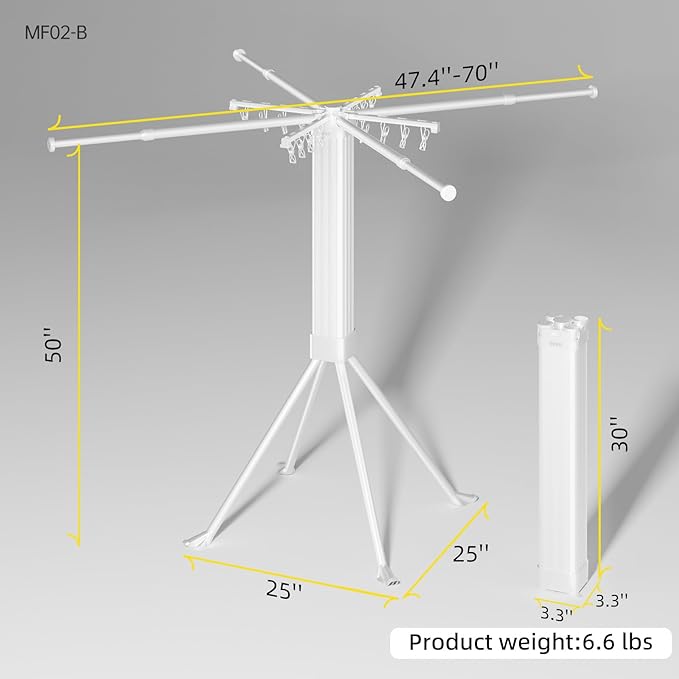 - 【Efficient Space-Saving Design】Our portable laundry drying rack is perfect for small apartments without a dryer. This collapsible drying rack folds neatly into a slim 3.38" x 3.38" x 30" tube, easily stored in a corner, closet, or under the bed. The design keeps your clothing drying rack dust-free during storage, so it’s ready to use immediately after unfolding