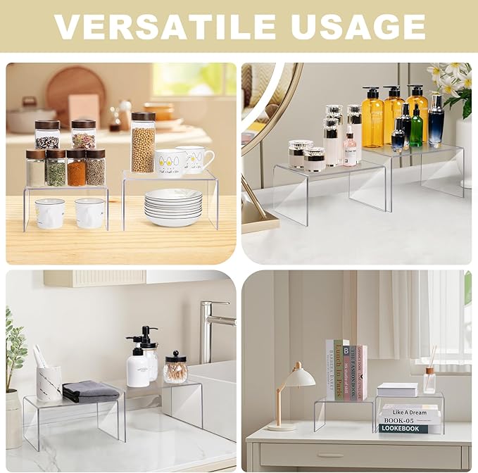 - Kitchen Cabinets Shelf Risers -- Made of acrylic material and is fully protected by a protective film. Please tear off the protective film on both sides before use