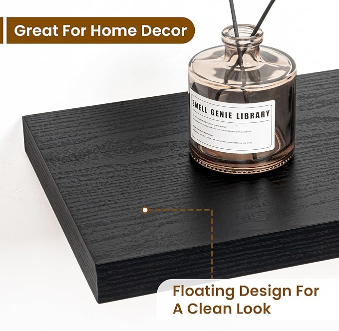 Fun Memories 55 Inch Fireplace Mantel Shelf -Long Floating Shelves, Deep Wall Mounted Farmhouse Display Shelves with Invisible Heavy Duty Metal Bracket, Black, 2 Pack