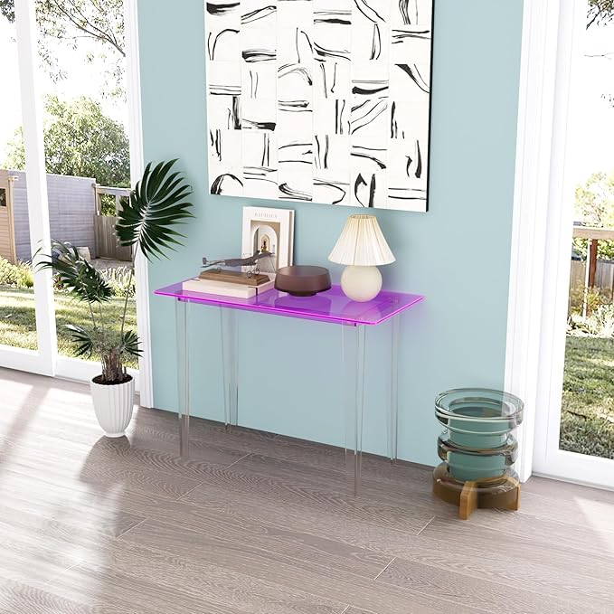 Acrylic Desk, Modern Study Table for HomeOffice-Extended Surface Multi-Purpose Console & EntrywayTable, Sturdy Lightweight Design((42.5-inch, Pink)
