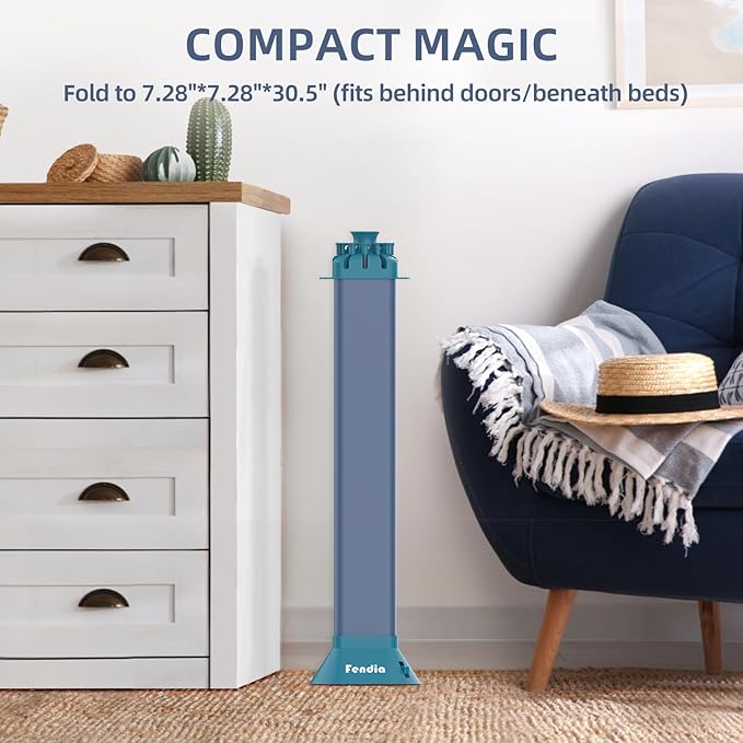- 【Built for Indoor/Outdoor Durability】 Engineered to last, the Fendia heavy duty foldable drying rack combines weather-resistant carbon steel and reinforced joints. The 4-leg drying rack base stays stable on uneven surfaces like patios or campsites, while the rust-proof materials withstand humid bathrooms or rainy days. Collapse it into a portable drying rack (30.5" tall) for storage or travel—perfect for camping, dorm rooms, or beach trips.