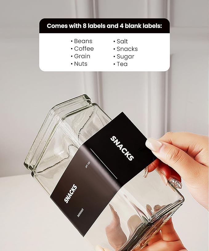 - 【Includes Reusable Labels for Effortless Organization】Bundle includes 8 pre-printed labels and 4 blank labels. Perfect for rotating pantry staples or kitchen essentials.