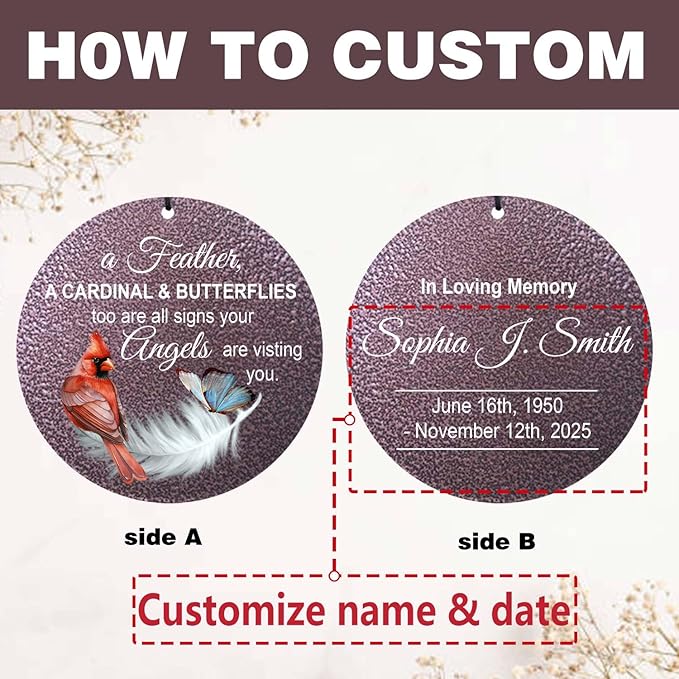 ASTARIN Custom Cardinal Wind Chimes for Loss of Lover Mom Dad, Butterfly Wind Chime Memorial Sympathy Gifts for Remembrance, Windchimes in Memory of a Loved One