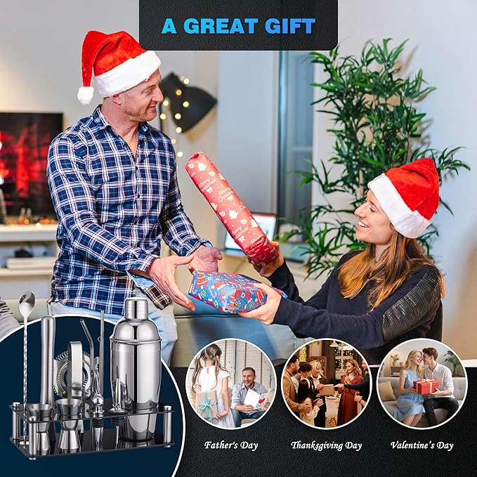 - [GIVE YOUR PROFESSIONAL BARTENDING EXPERIENCE] : Whether you're an amateur bartender or a professional cocktail mixing guru, this bartending kit even makes you professional-level bartending shockingly easy. With this cocktail shaker set, you can easily have a fun cocktail mixing experience, also it will be perfect for entertaining guests.