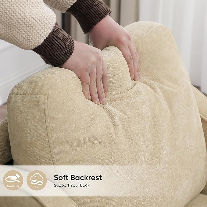 - 【Comfortable Seating】The 5.7" thick seat of this living room chair are padded with high-density foam for superior comfort. The armchair with 115° seating angle offers enhanced support, reduces lumbar fatigue and ensures a comfortable seating experience. The armrests are perfectly aligned with your arms, providing your hands with plenty of support for long hours of reading, resting or relaxing.