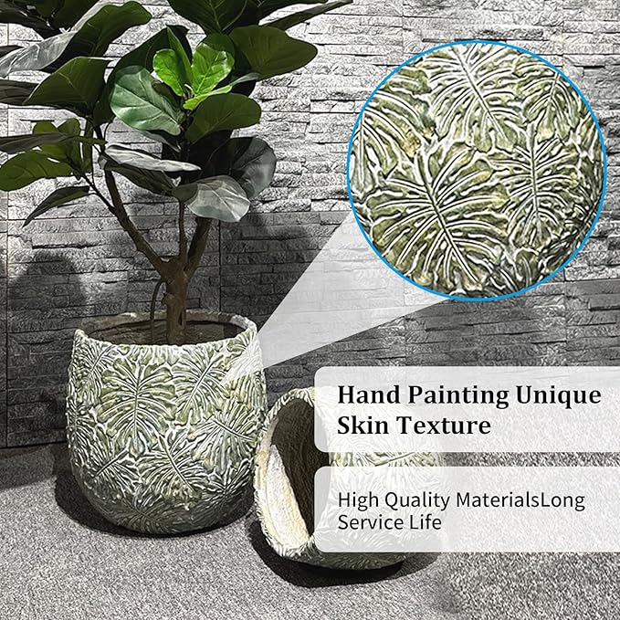 Craft flowerpots 18"+13"+19" Dia Round Concrete Planter Set of 3 Large Outdoor/Indoor Planter Pots Containers with Drainage Holes and Rubber Plug for Home Garden (Green, Large)