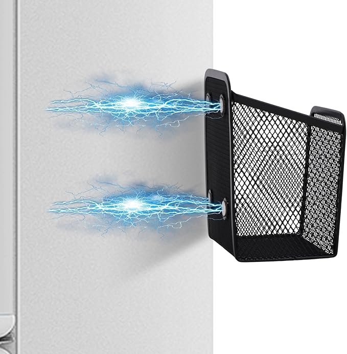 - Save Space: The size of the magnetic holder for refrigerator is 3.7"x2.7"x4.8", not occupying too much space. It can well organize pens, pencils, markers, keys, notes, keeping your locker and desk tidy.