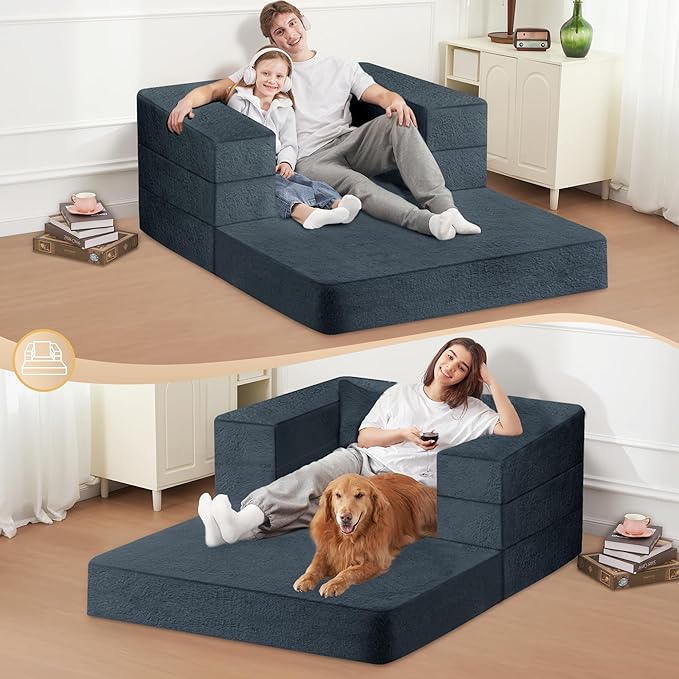 - 【Comfortable Fabric & Foam】This folding sofa bed features High density integrated sponge with strong support. Equipped with skin-friendly imitation mink fabric, it will provide you an ultimate sitting experience when you sit or lie on this sleeper sofa bed.