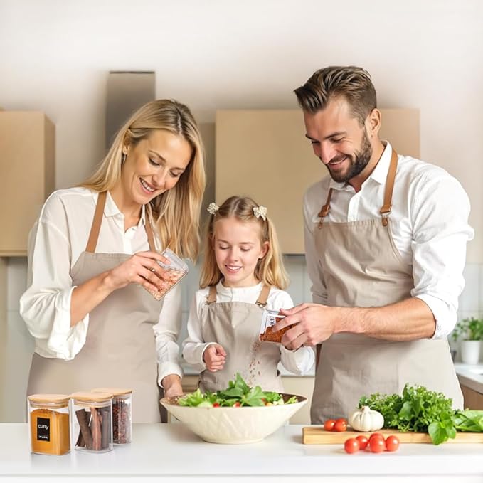 - Stylish Spice Jar Set: 8 oz Clear jars with bamboo lids are both functional and visually appealing, making spices easy to spot and stay fresh. Nice and cute look makes the 8 oz glass jars with lids as a good gift for anyone who loves kitchen organization