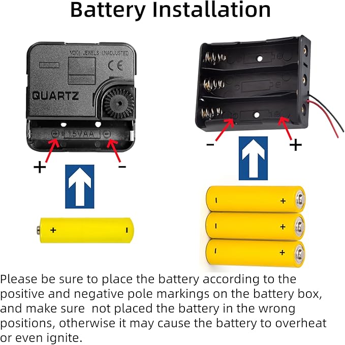 - BETTERY OPERATTED: The clock hands and the gears are operated by two separate battery compartments, 2 AA batteries work for the moving gears, 1 AA battery works for the clock hands, they can run simultaneously or independently (Note: Battery is not provided )