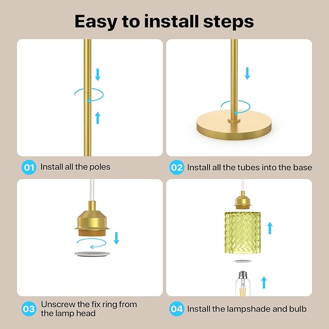 - Ready - to - Use Convenience:This crystal floor lamp comes with 3 matching E26 bulbs, saving you the trouble of extra purchases. Simply install it right after receiving the lamp and start enjoying it quickly — so you can effortlessly brighten up your daily life