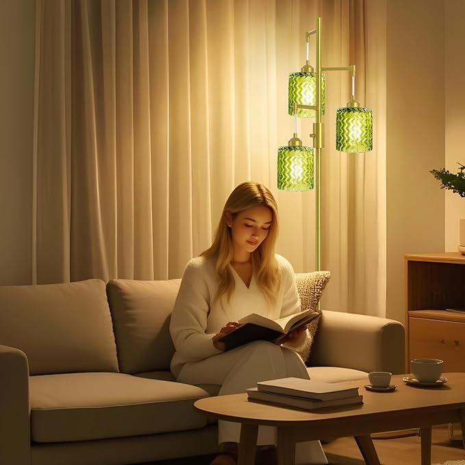 - Light Up Spatial Aesthetics:Crafted with a delicately textured green crystal glass shade, this glass floor lamp refracts soft light with rich layers when lit. Unlike conventional colors, it infuses a fresh artistic vibe into spaces like the living room and bedroom, easily becoming a standout highlight of your home decor