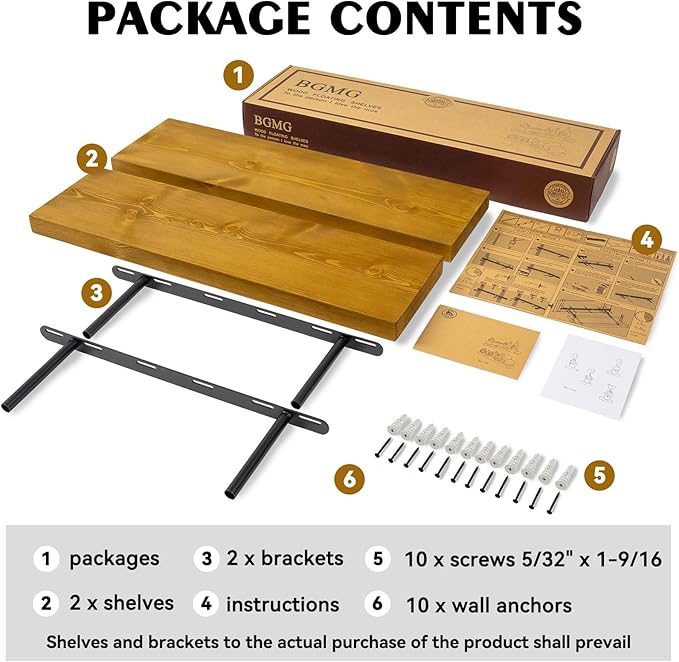 - EASY TO INSTALL: These floating shelves come with stainless steel galvanized invisible brackets, toggle bolts for drywall, and simple instructions to help you install them. These wall shelves are easy to assemble, requiring only two boards and the necessary screws and hardware. We also provide detailed instructions for quick and easy assembly