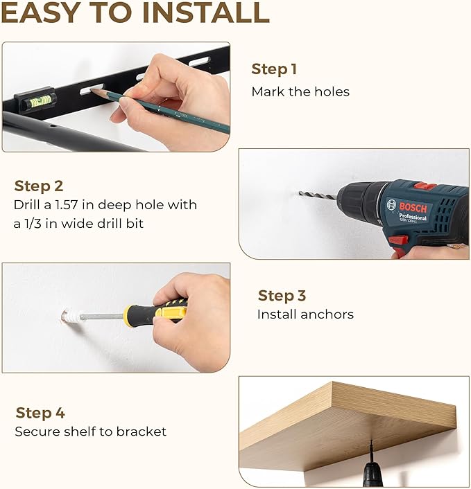- Sturdy & Secure design: These 32-inch floating shelves feature a durable, concealed mounting bracket that offers reliable support for your belongings. Engineered for hassle-free and stable installation, each shelf includes all the required hardware to ensure a strong, wobble-free hold—perfect for showcasing your favorite decor, photos, or everyday items with confidence and style.