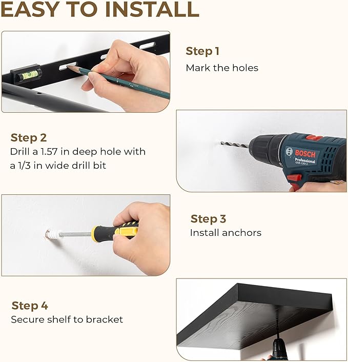 - Sturdy & Secure design: These 36-inch floating shelves feature a durable, concealed mounting bracket that offers reliable support for your belongings. Engineered for hassle-free and stable installation, each shelf includes all the required hardware to ensure a strong, wobble-free hold—perfect for showcasing your favorite decor, photos, or everyday items with confidence and style.