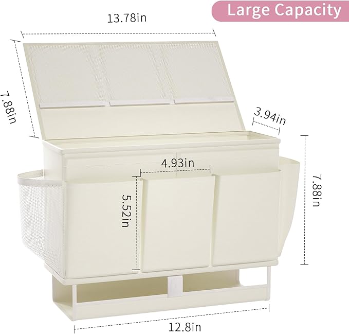 - Product Size: The overall size of the bed storage caddy: L13.78*H7.88*W3.94inch, pocket size: H5.52*W4.93inch, bedside storage is suitable for railing width less than 1.58inch.
