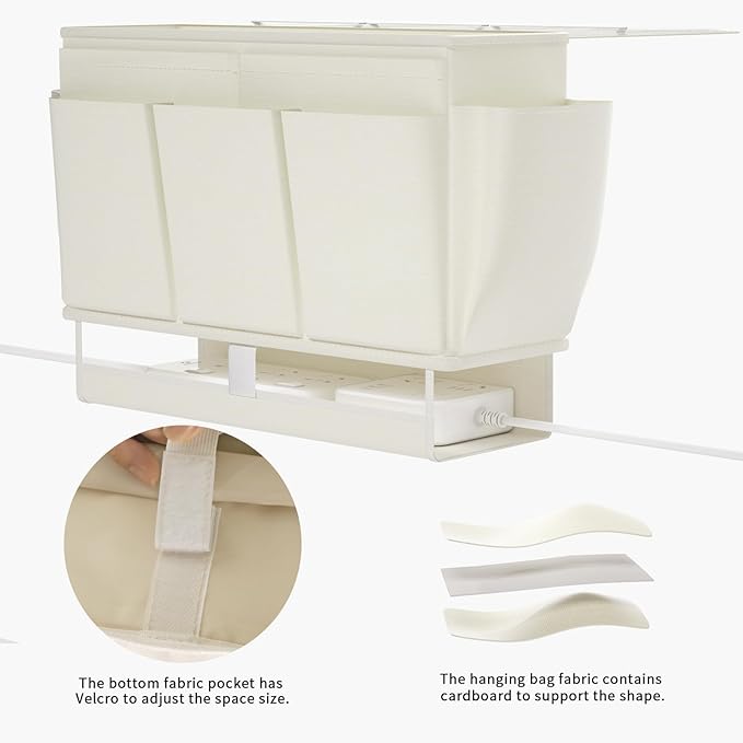 - Multi-functional Use: The bottom of the bed caddy is designed with a power board storage space, equipped with elastic lanyards and Velcro fixing straps, which are convenient to adjust the bottom space, better adapt to the use of the power board, meet the needs of charging and say goodbye to the trouble of wires.