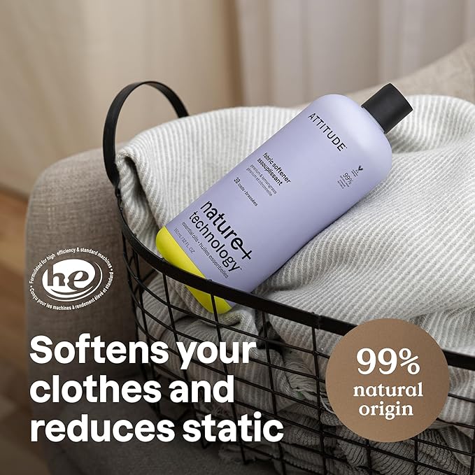 ATTITUDE Liquid Fabric Softener, Natural Origin Ingredients, For White and Colored Clothing, Deodorizes, Gentle on Delicate skin, Infused With Essential Oils, Geranium & Lemongrass, 38 Loads, 32 Fl Oz