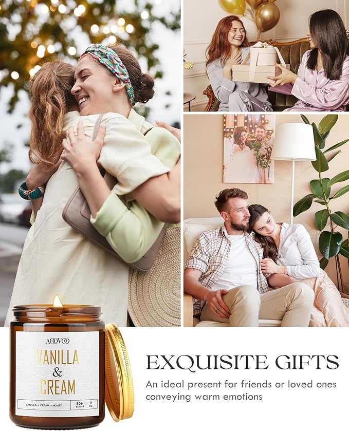 AOOVOO Vanilla Cream Candles - 9 oz Scented Candles, Aromatherapy Candle, Soy Candle for Home Scented