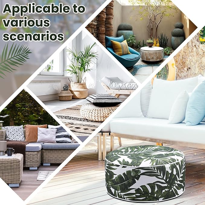 - Safe and Easy to Assemble: carefully designed with your convenience in mind, the round foot stool comes with a convenient inflation solution; Simply ensure the inflation port faces upward and do not fill it too full at once; Inflate partially, fit the inner core into the fabric ottoman cover, add more air and ensure to press the air nozzle down to flatten it in the end