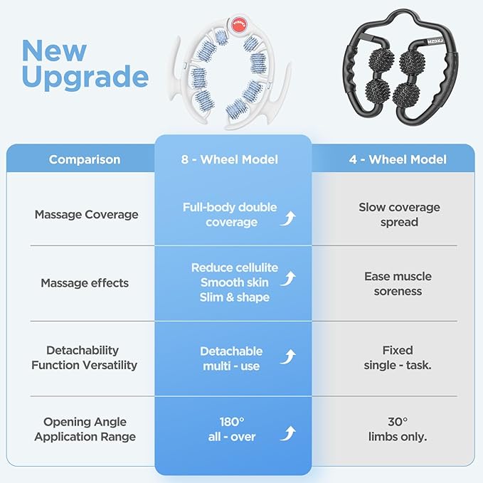 - 🔓 180° Full-Coverage Massage– 180° maximum opening adapts perfectly to waist hollows, hip curves, and thigh contours, eliminating gaps common in traditional massagers. Maintains constant skin contact during motion to deliver steady pressure on cellulite-prone areas, supporting gradual texture refinement through daily care.