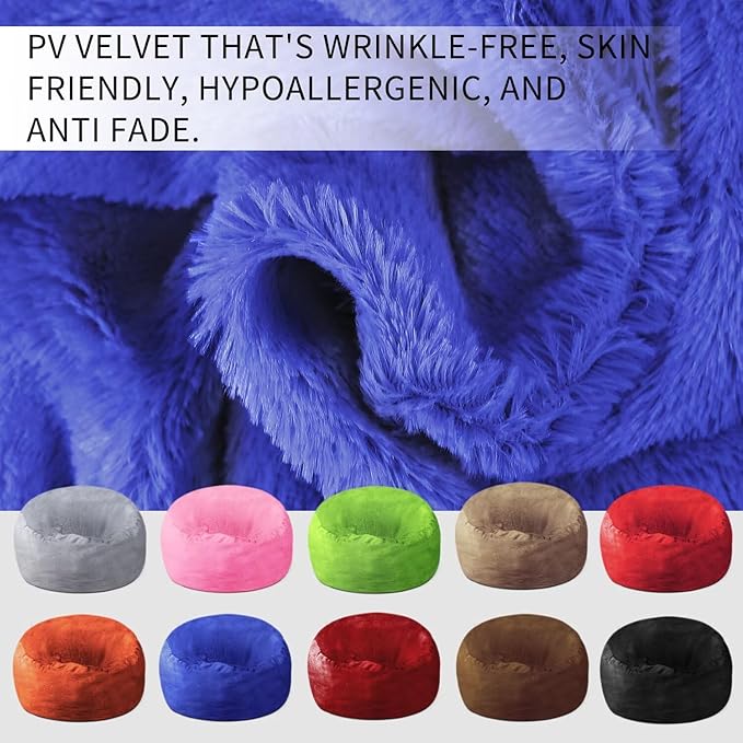 - 【Comfy,Durable,And Easy To Care】Our Giant Bean Bag Cover Is Made Of Super Soft, Furry Pv Velvet That'S Wrinkle-Free, Skin Friendly, Hypoallergenic, And Anti Fade. It Features Double-Stitched Seams And A Two Layer Zipper For Enhanced Durability And Long-Lasting Use.