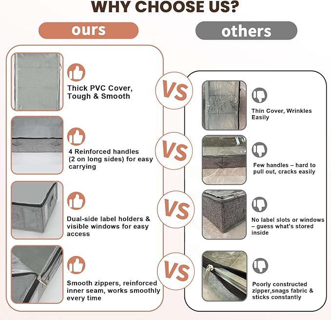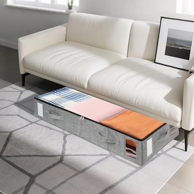 - Easy Access&View: Large clear top window allows you to to see whatβs inside easily; the label holders with blank cards on two sides for your mark, two visible windows help you identify the contents more quickly. 4 reinforced handles make it easy to carry and pull out from under the bed. Double strong metal zippers making for smooth and easy open and close