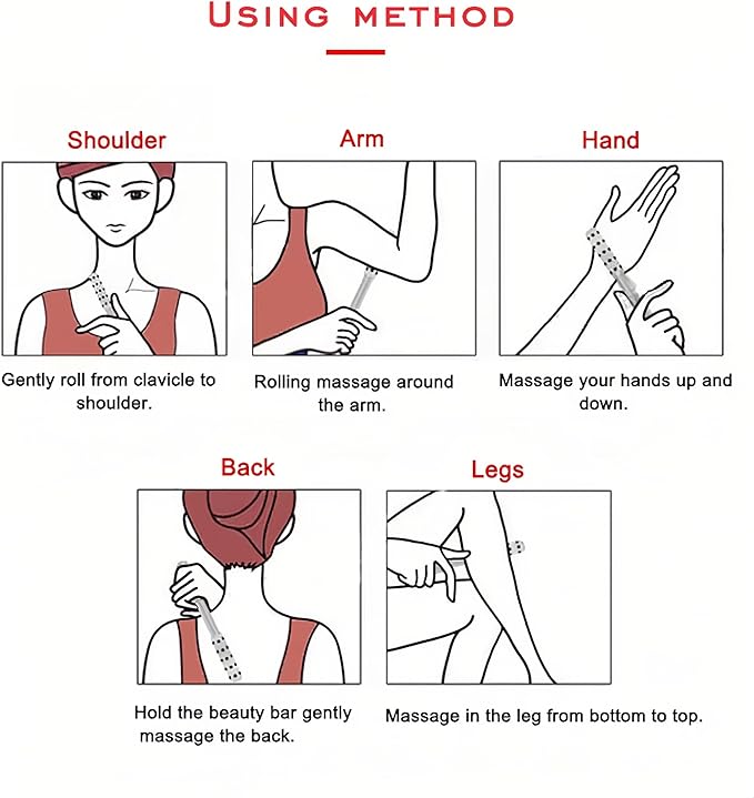 - 1. Ergonomic Design for Precision Use:Slim handle with rounded ends fits comfortably in hand and glides smoothly along facial contours, offering better control and targeted massage.