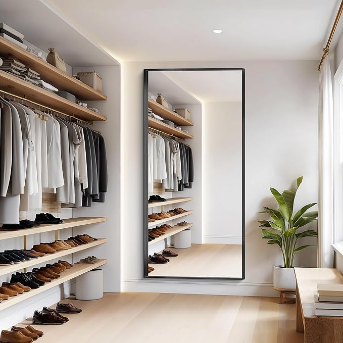 - Sleek & Sturdy Aluminum Alloy Frame: This elegant black bathroom mirror features a lightweight yet durable aluminum alloy frame, designed to resist deformation, chipping, and corrosion. The slim metallic profile adds a modern touch, elevating your space with a luxurious finish. Perfect as a wall-mounted or hanging mirror, it combines strength, style, and longevity.