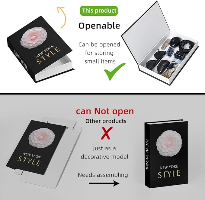 - Realistic Faux Book Design Crafted to mimic real hardcover books with detailed spines and vintage patterns, this decorative storage box blends seamlessly into your bookshelf or coffee table for hidden organization.