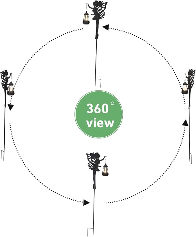 - 【 Tall Metal Solar Stakes 】Differing from other Fairy Statutes Solar lights for decoration, these angel figurines lights offer much taller height as 39 inch. The fairy garden kit comprises two straight poles with screws on both ends and one pole with a stake.