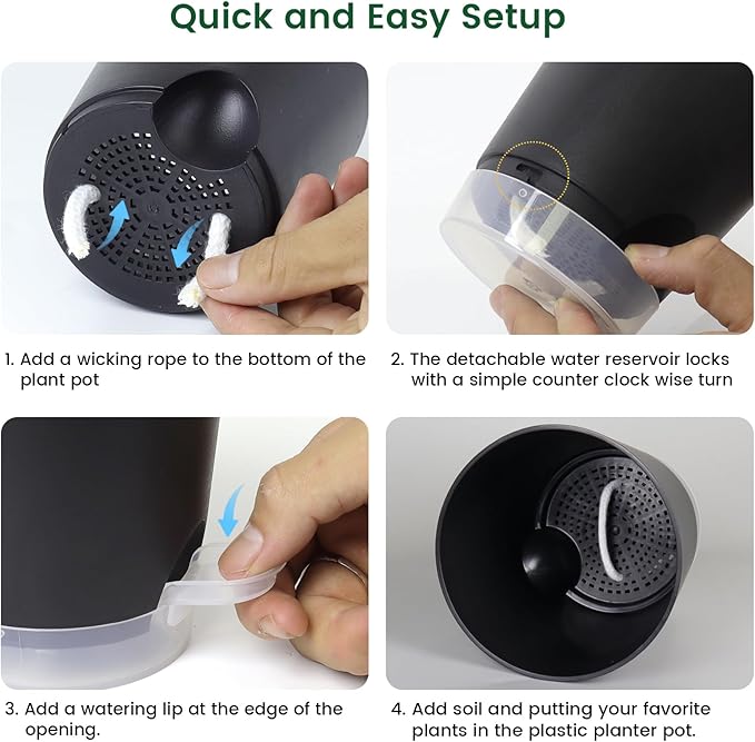- 【Self-Watering System】These 4 inch small plant pots are designed with a wick rope that automatically deliver water to plant roots, reducing the need for frequent watering. The set of 5 pots for plants are perfect for busy individuals and forgetful gardeners