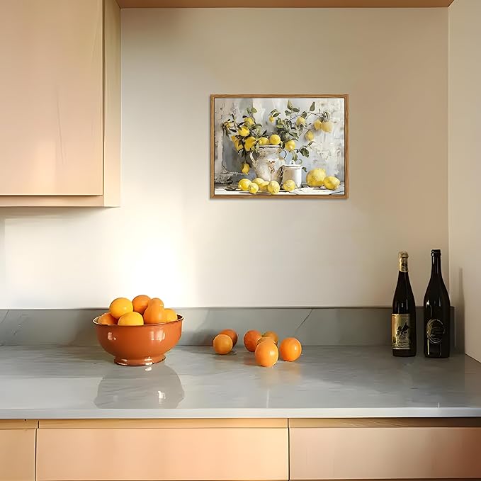 - 【Perfect for Kitchen & Dining Room】: Designed as wall art for kitchen or dining room wall art, this piece enhances cooking and dining spaces with vibrant colors and uplifting citrus imagery