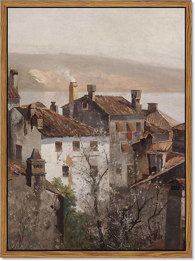 Floating Framed Vintage Canvas Wall Art, European Country Towns Wall Decor Oil Paintings Artwork, Rustic Farmhouse Posters Prints Pictures for Living Room Hallway Bedroom 12x16 inch