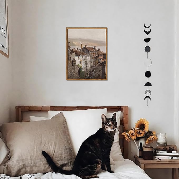 Floating Framed Vintage Canvas Wall Art, European Country Towns Wall Decor Oil Paintings Artwork, Rustic Farmhouse Posters Prints Pictures for Living Room Hallway Bedroom 8x10 inch