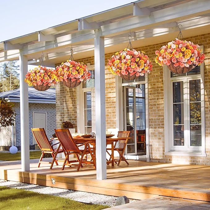 - Fall Flowers Artificial for Decoration: These artificial flowers for outdoors hanging basket are perfect for garden, porch, patio, balcony, yard, home, front door, and outside decoration. These hanging baskets with artificial flowers provide the beauty of real flowers without the need for maintenance.