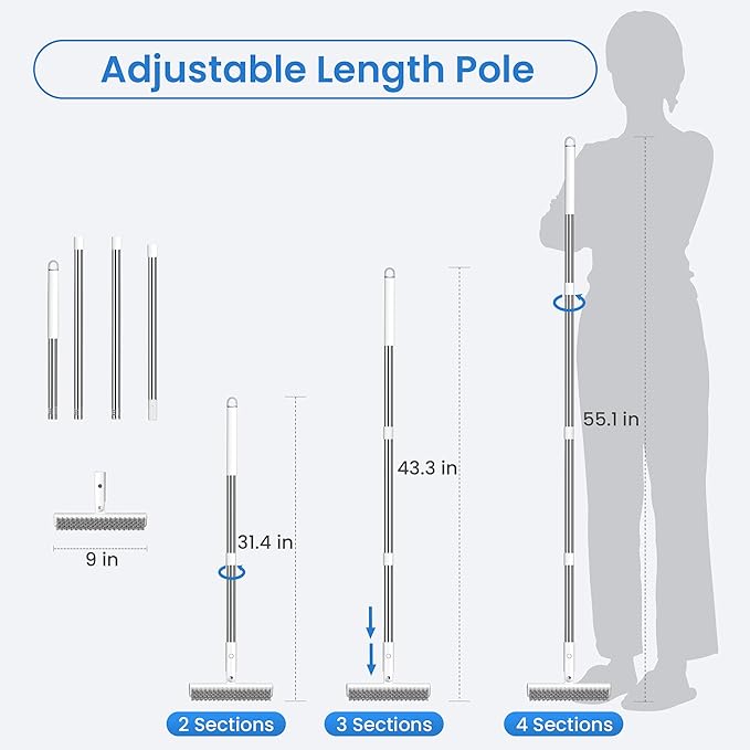 - 【Extra-Long 56” Handle for Comfort】 Clean without bending or kneeling — the 56-inch long handle saves your back and knees, making it ideal for extended cleaning sessions indoors or outdoors.
