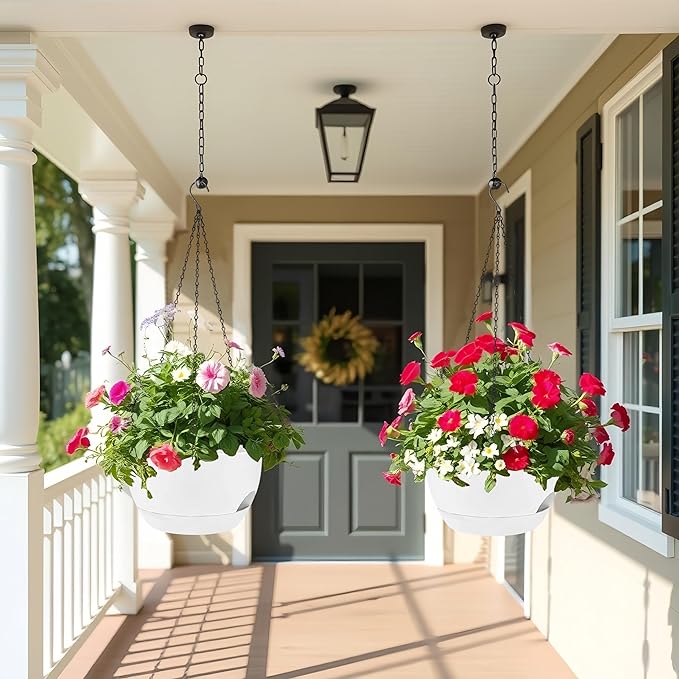 - ✅ 2 Large Self-Watering Planters: Double the value! Includes two 12-inch wide plastic hanging planters with built-in self-watering reservoirs to reduce the need for frequent watering and keep plants healthier.