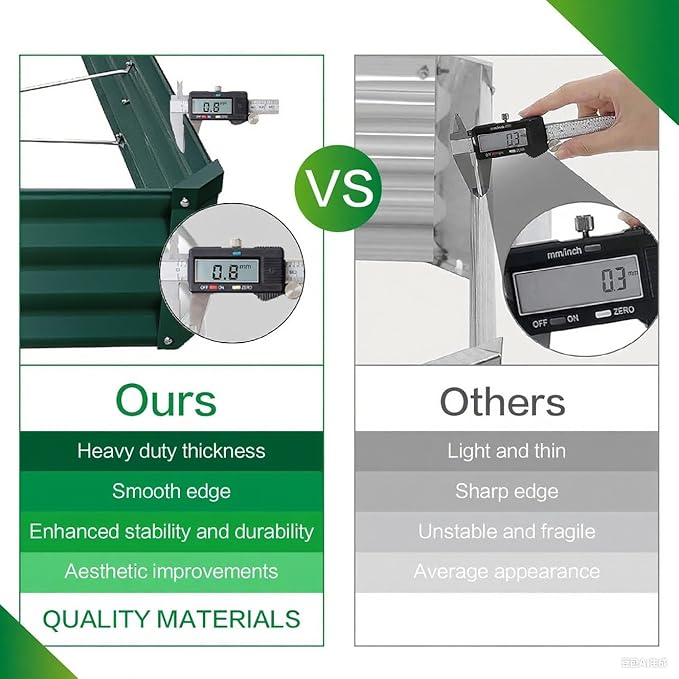 - DURABLE GALVANIZED MATERIAL: GARDMAX outdoor raised garden beds are made from 0.8mm heavy-duty galvanized material, ensuring exceptional longevity and durability. It is more resistant to high temperatures and freezes, making it very suitable for outdoor use. And this metal will survive the elements for decades, but when you're ready to replace it, the metal is entirely recyclable