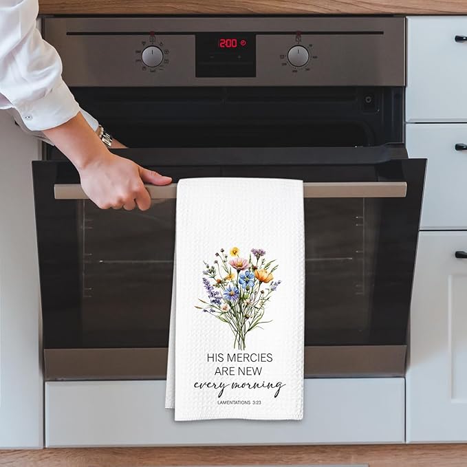 Christian Kitchen Towel, Waffle Weave Microfiber Scripture Hand Towel, His Mercies are New Every Morning Bible Verse Farmhouse Decor for Kitchen Bathroom, Inspirational Gift for Women