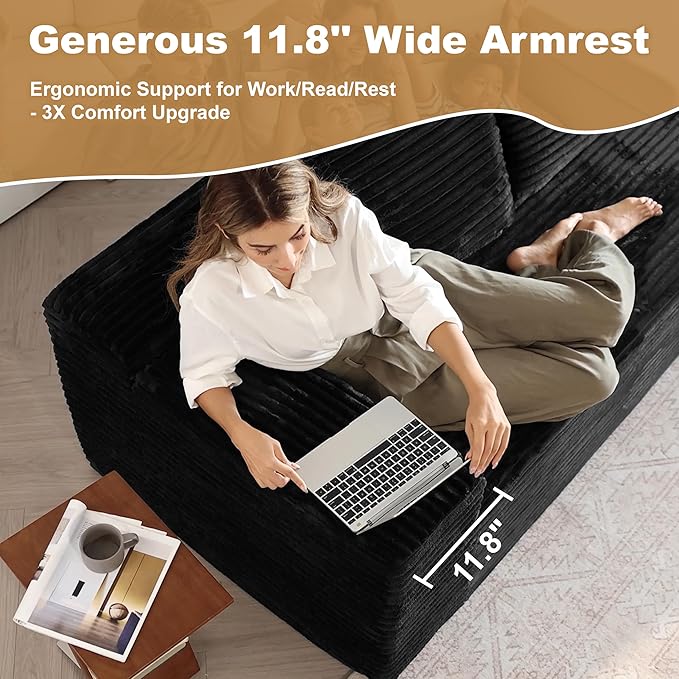 136" Sectional Couches for Living Room Modern Modular Sofa with L-Shape Couchs Upholstered Boneless Couch Deep Seat Sectional Couch with Chaise (Black, Left Facing Chaise+3Seaters)