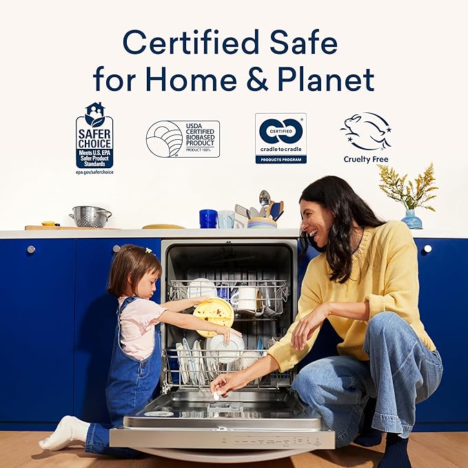 - CLEAN INGREDIENTS. Microplastic-free, septic-safe formula made with plant and mineral-based cleaning power so itβs powerful enough to combat spotting and filming even in hard water, but safe for use around everyone in the family. Formulated clean without potentially gut-harming ingredients. EPA Safer Choice, Leaping Bunny Cruelty-Free, Vegan, B Corp Certified, Climate Neutral, USDA Bio-Preferred.