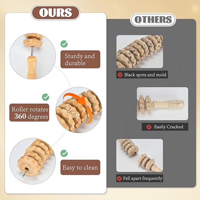 - Anytime, Anywhere-Fitness sculpting,sedentary office,post-operative care,hiking recovery ... a roll to get it done!The compact and portable wood therapy tools for body sculpting is not only a relaxation tool after working out,but also an alternative to professional post-operative recovery massager,which can be used anywhere,anytime to start a home SPA