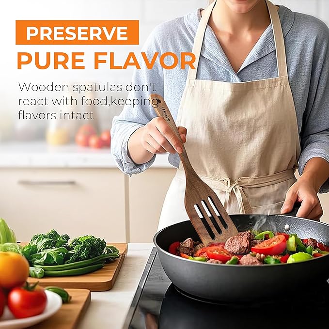 - 【Easy To Clean & Eco-Friendly】 Our wooden utensil sets are nonstick, easy to clean with warm or soapy water. This wooden utensils set is also completely biodegradble and decays fast than plastic ones. Definitely a great wooden kitchen utensils gift.